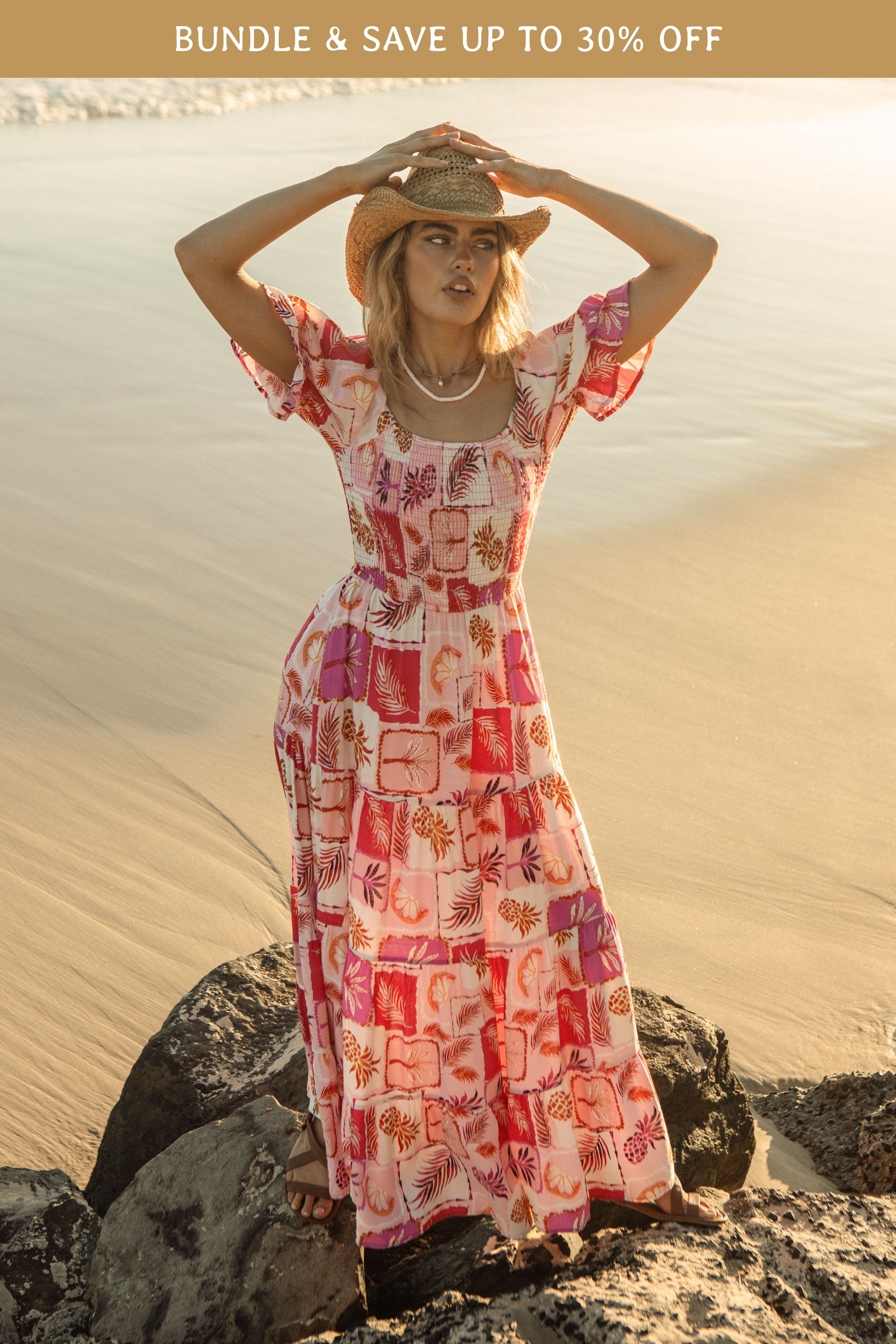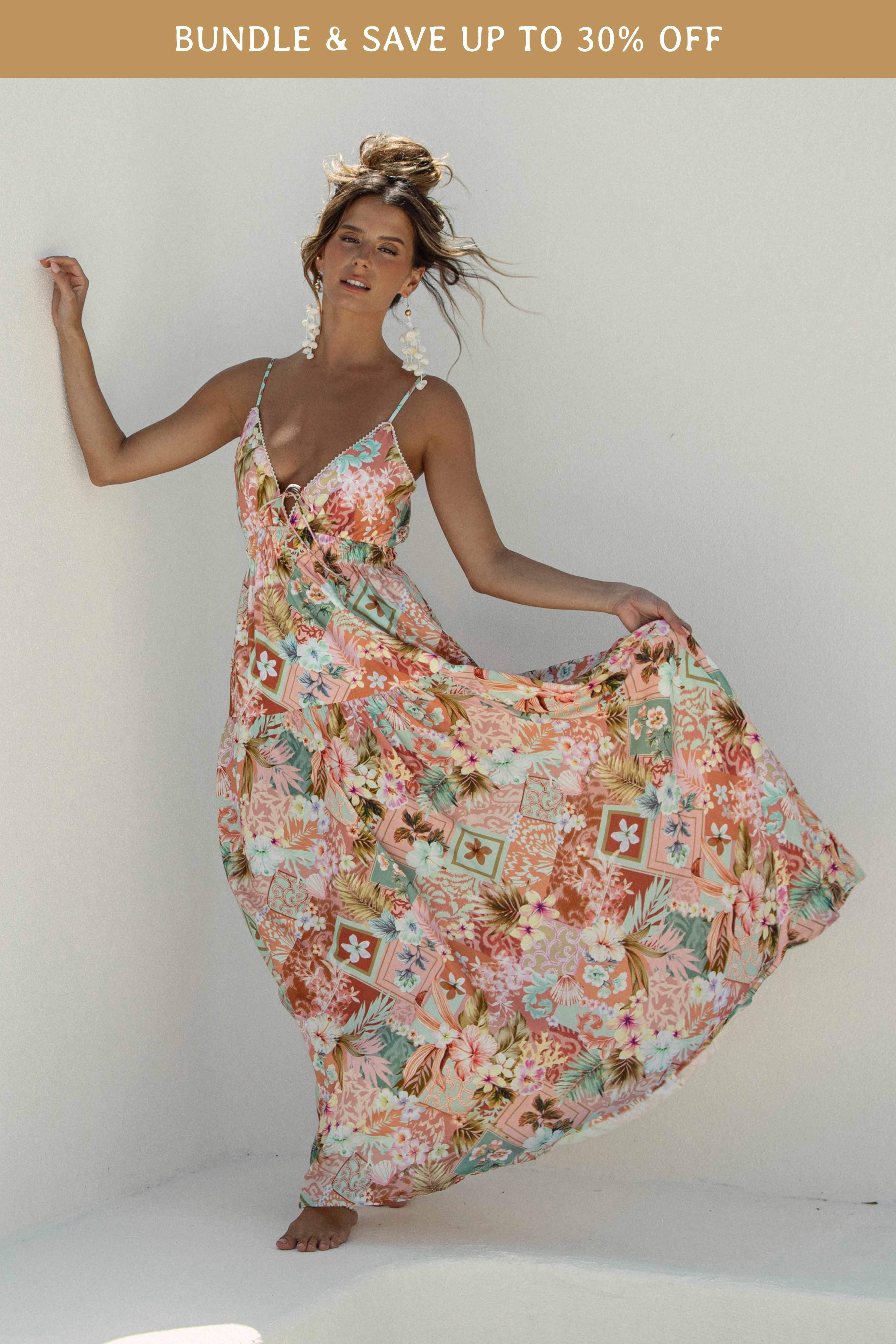 Lani Maxi Dress Sunburst Boho style tiered maxi in vibrant citrus shades