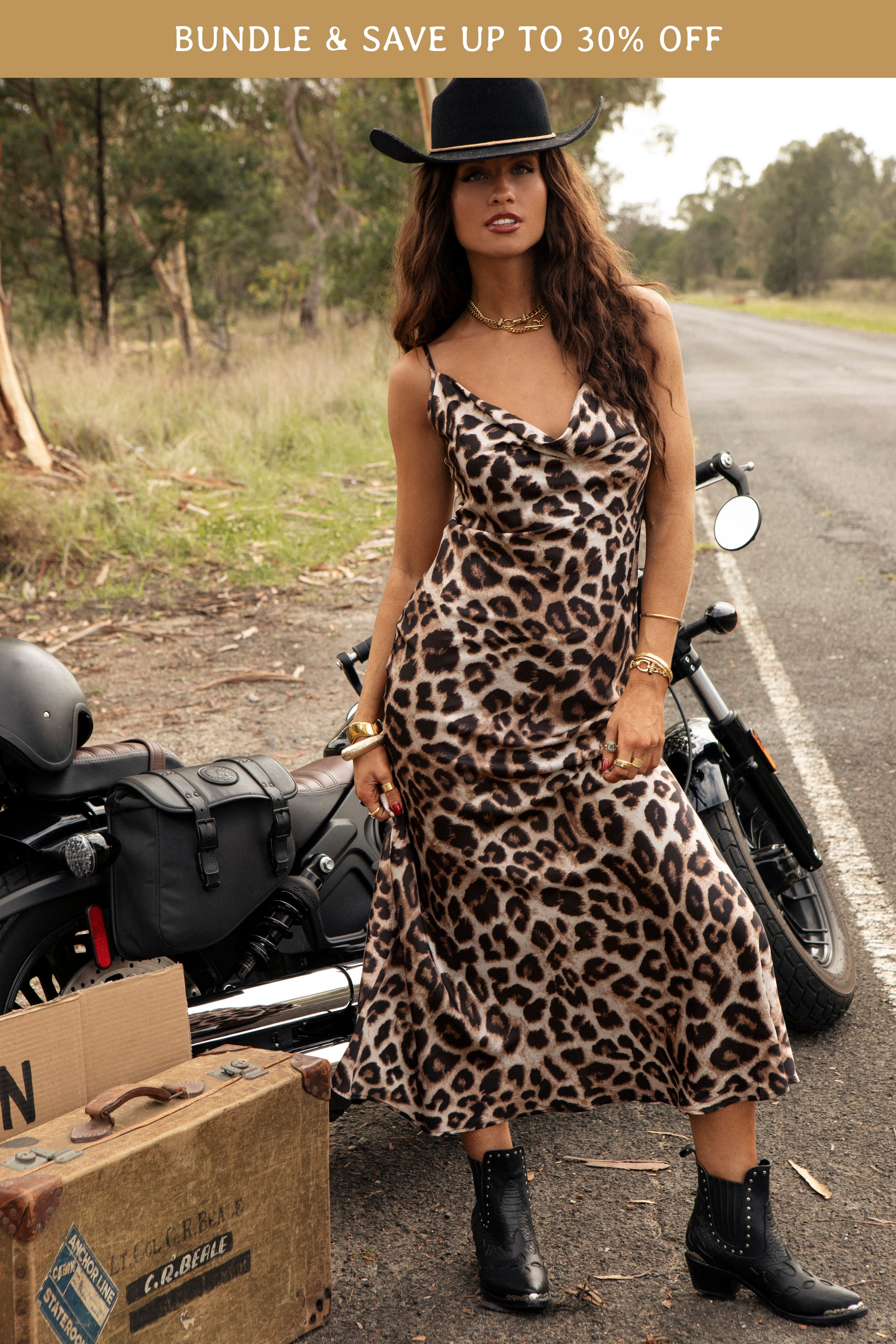 Boheme Midi Desert Dreamer - Boho style dress with smock bodice and 3/4 billowy sleeves. Generous fit.