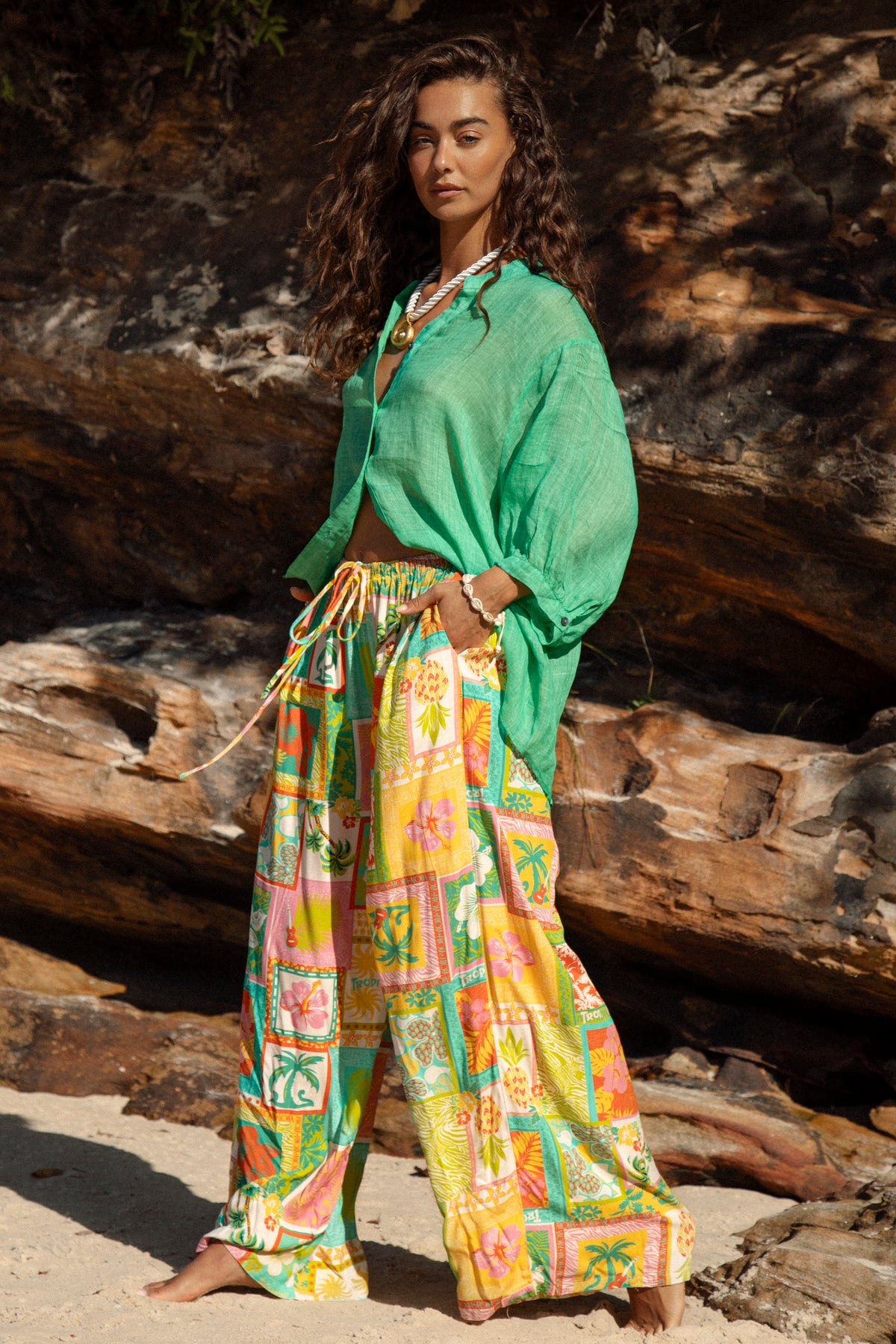Our Aloha Vacay Pants are bright, bold and perfect for a Summer Getaway.