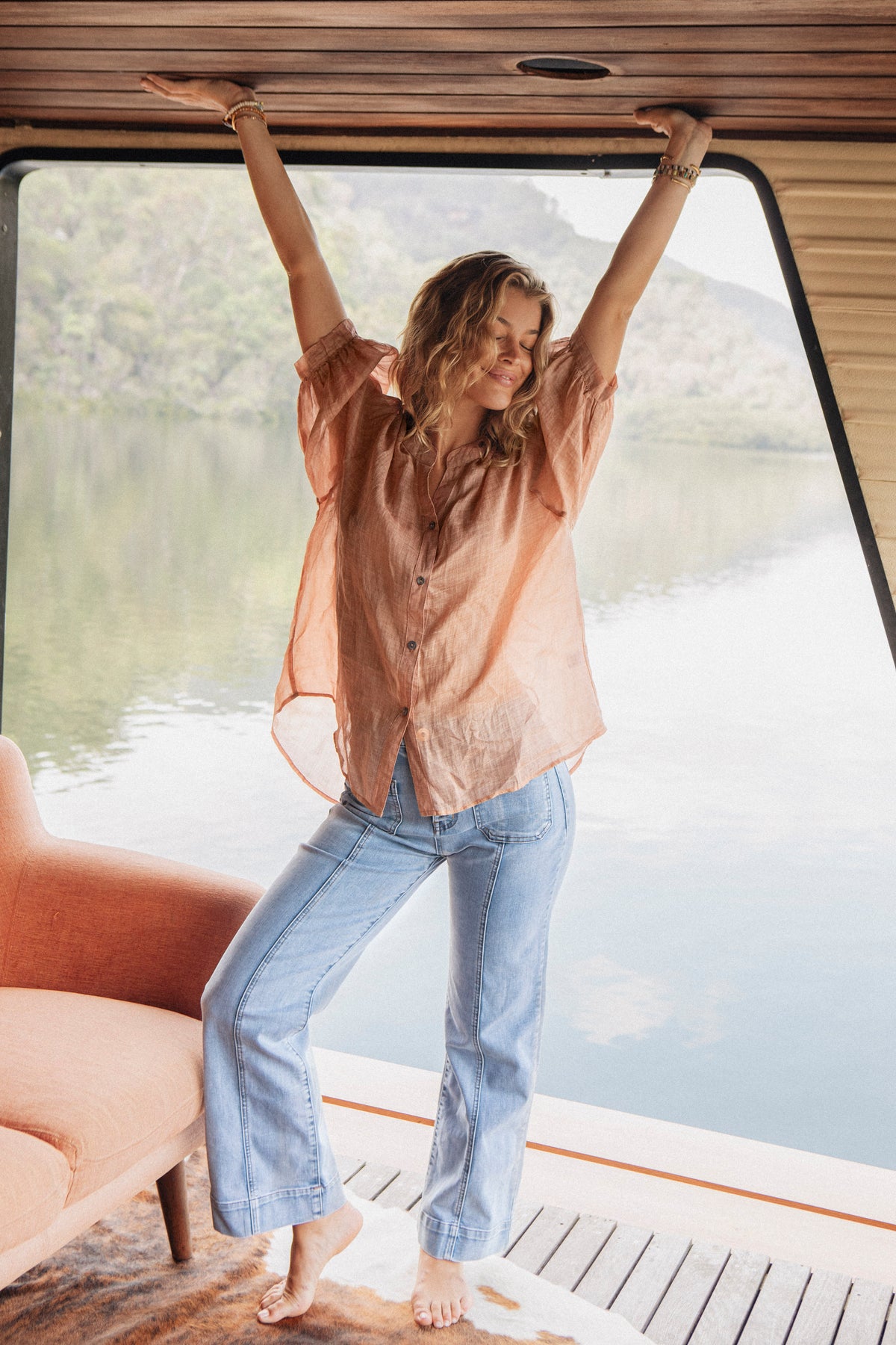 Our Under The Palm Shirt in Shell is lightweight and perfect for hot Summer Days in the sun. An oversized fit and oh-so floaty fabric pairs like a dream with denim, linen or printed pants.