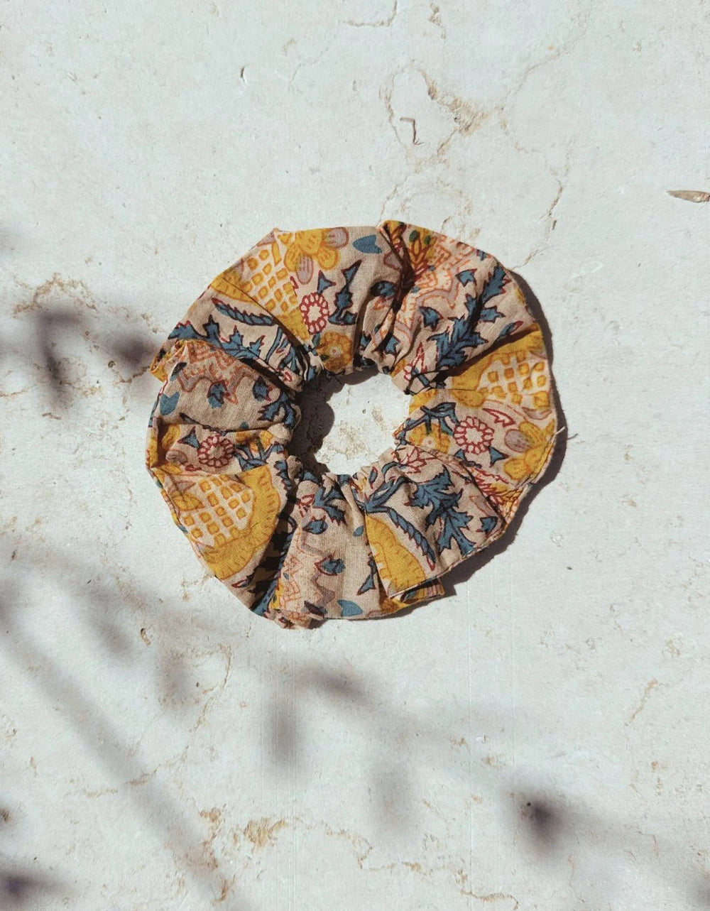 Designed to hold your hair securely without pulling or discomfort, this yoga scrunchie is handcrafted in India from soft, breathable cotton, block-printed by artisans. Over time, the fabric softens and fades beautifully, evolving alongside your journey.