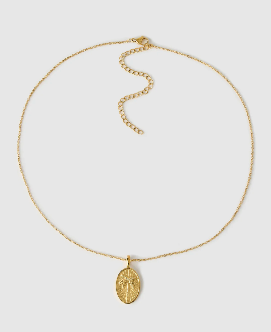 Add a touch of Palm Springs to your look with the lovely La Palma Necklace, a gorgeous golden pendant, here to be stacked with your other favourite necklaces or worn as a statement on its own! Stunning and stylish, La Palma features a gorgeous oval-shaped pendant with a palm tree design for a touch of summer fun all year long.