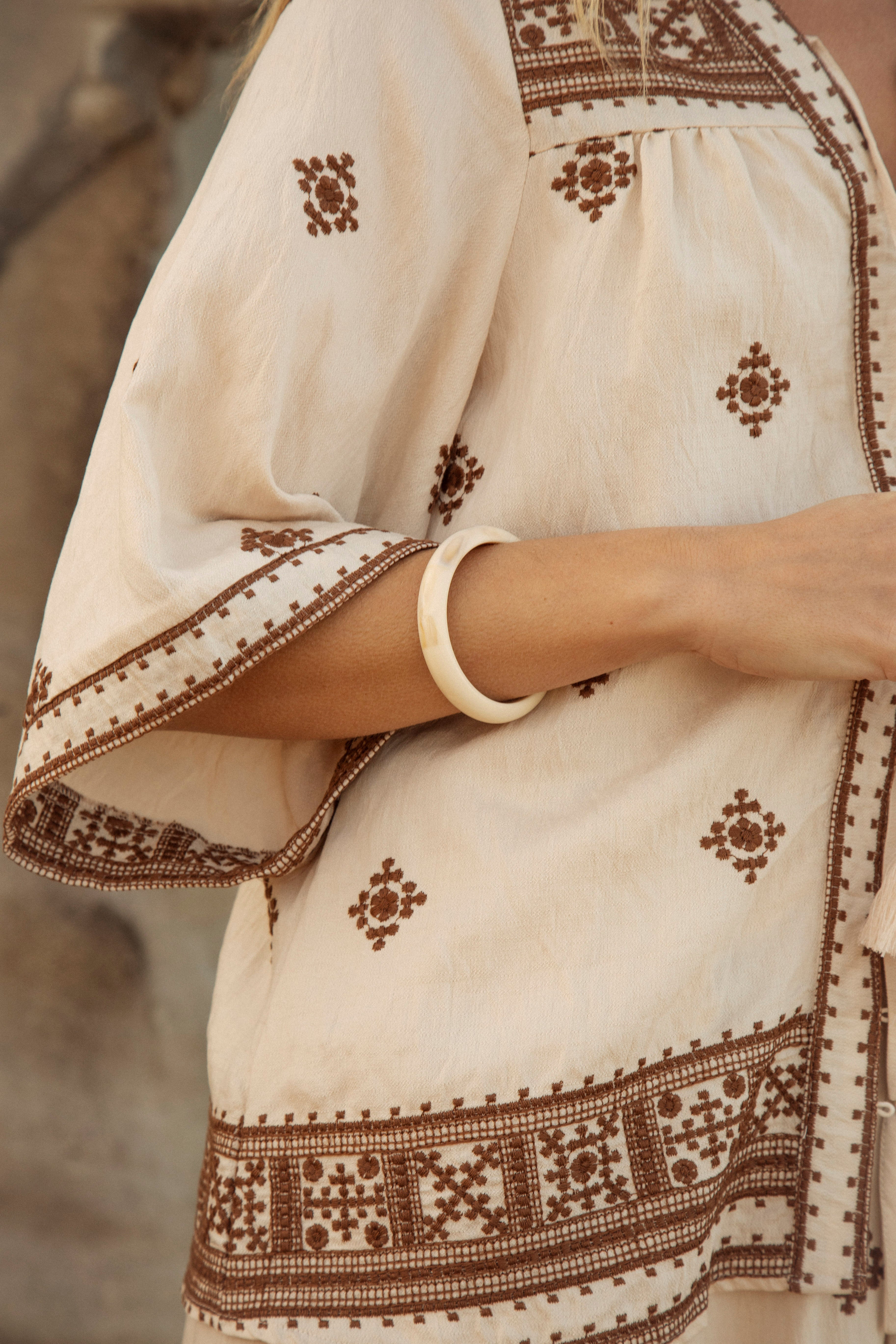 Amber Glow Chunky Resin Bangle - tortoiseshell bangle worn with denim