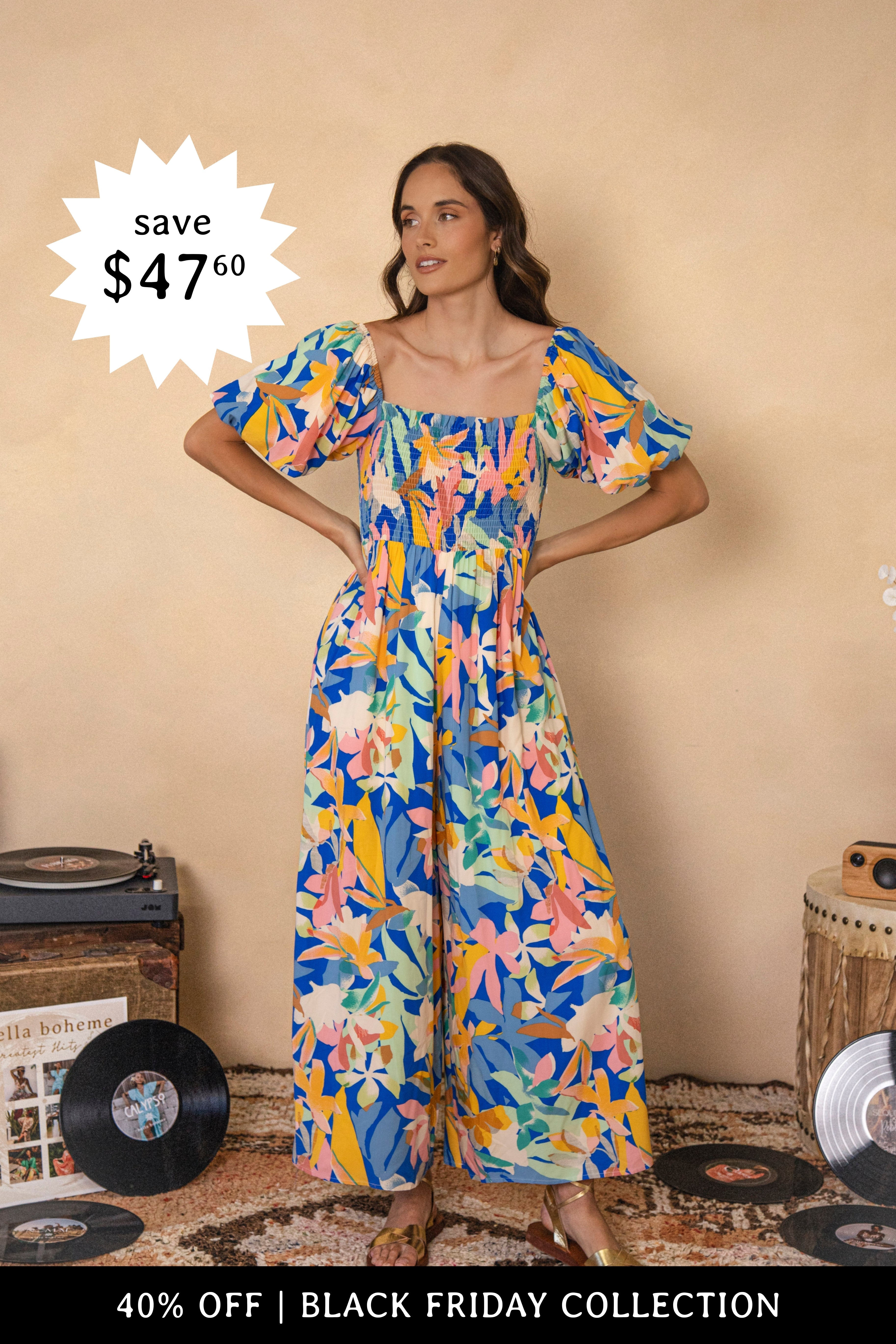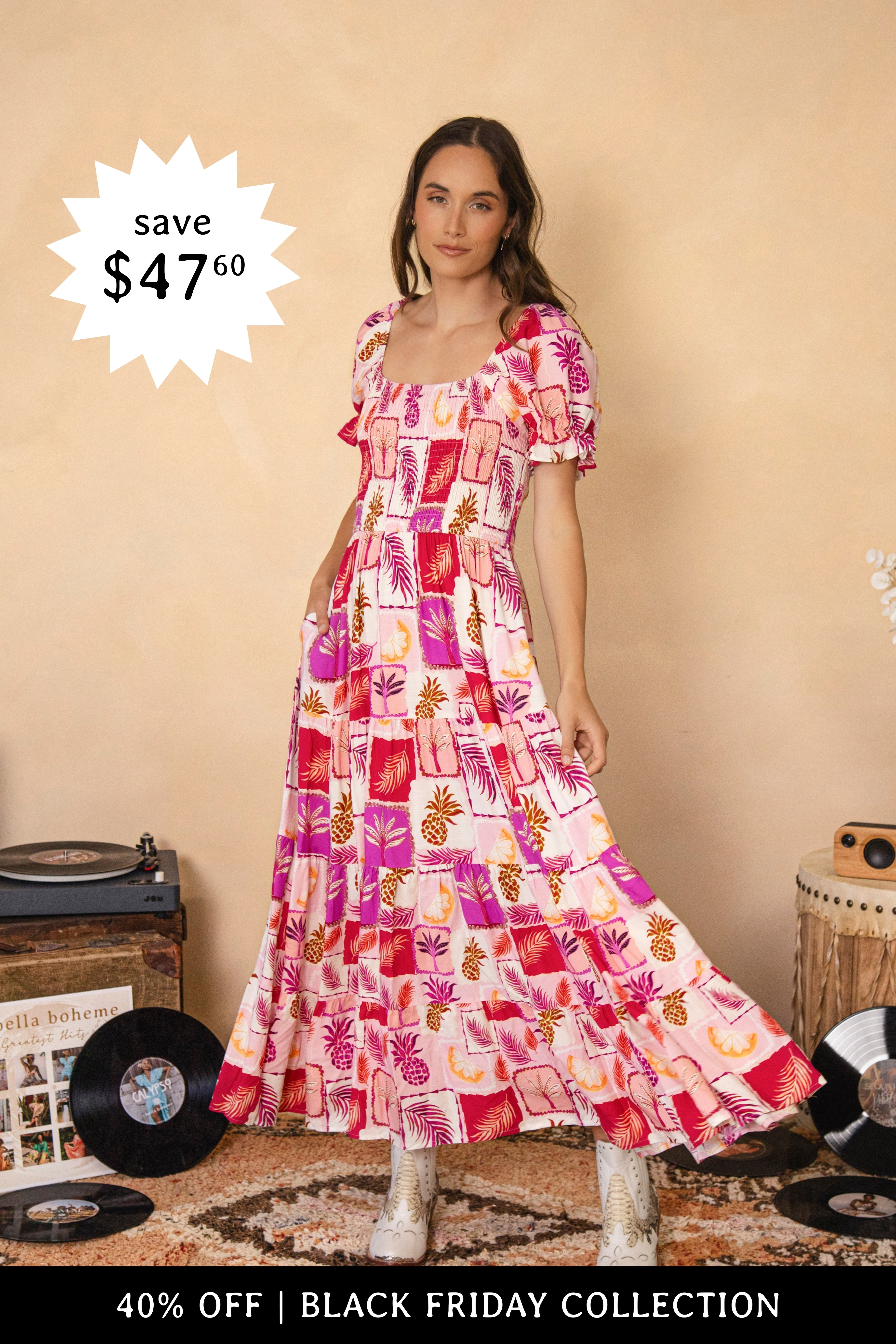 Lani Maxi Dress Sunburst Boho style tiered maxi in vibrant citrus shades