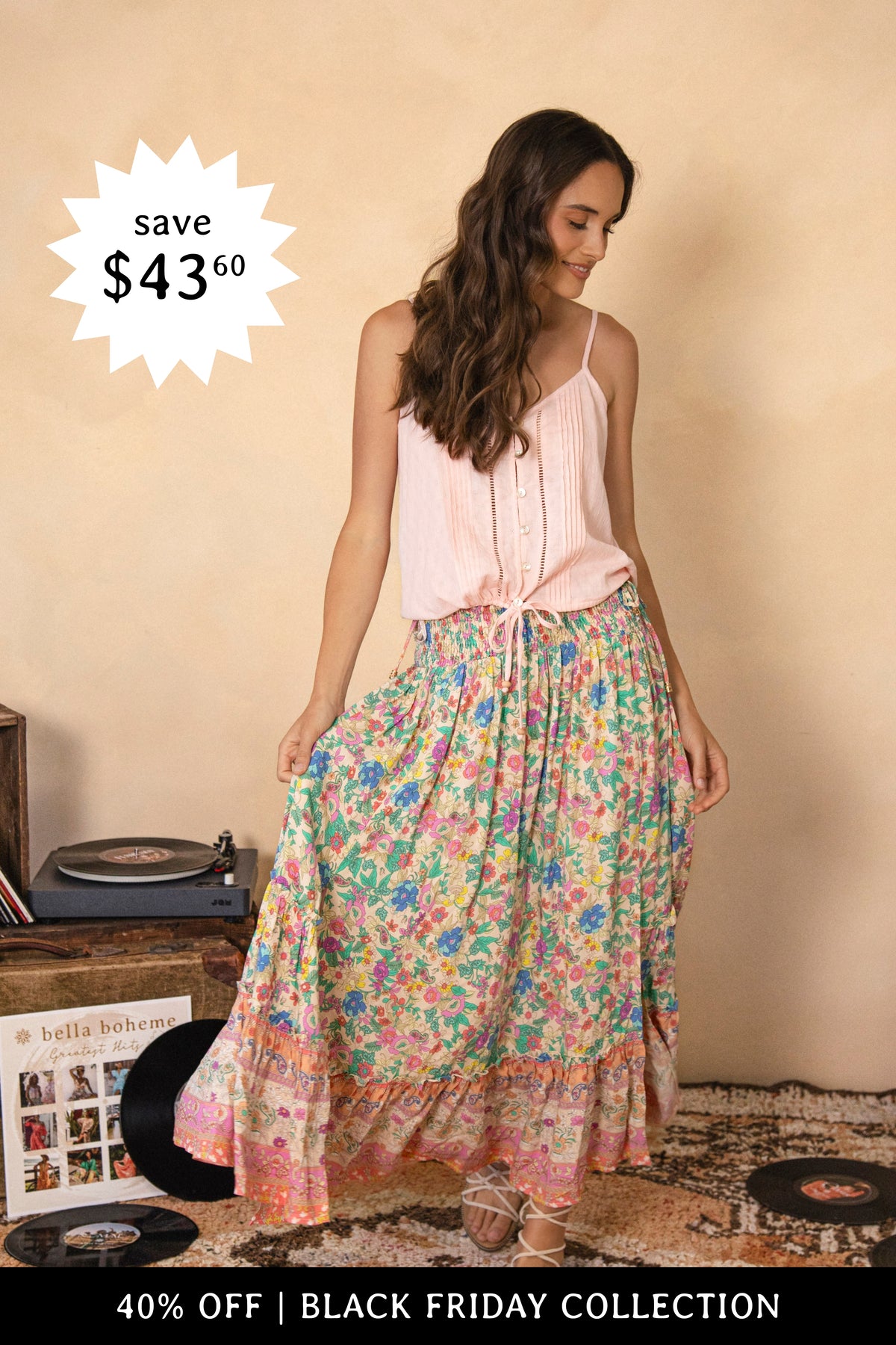 Twirl your way through Spring in our favourite Camila Skirt in the statement Poet print.