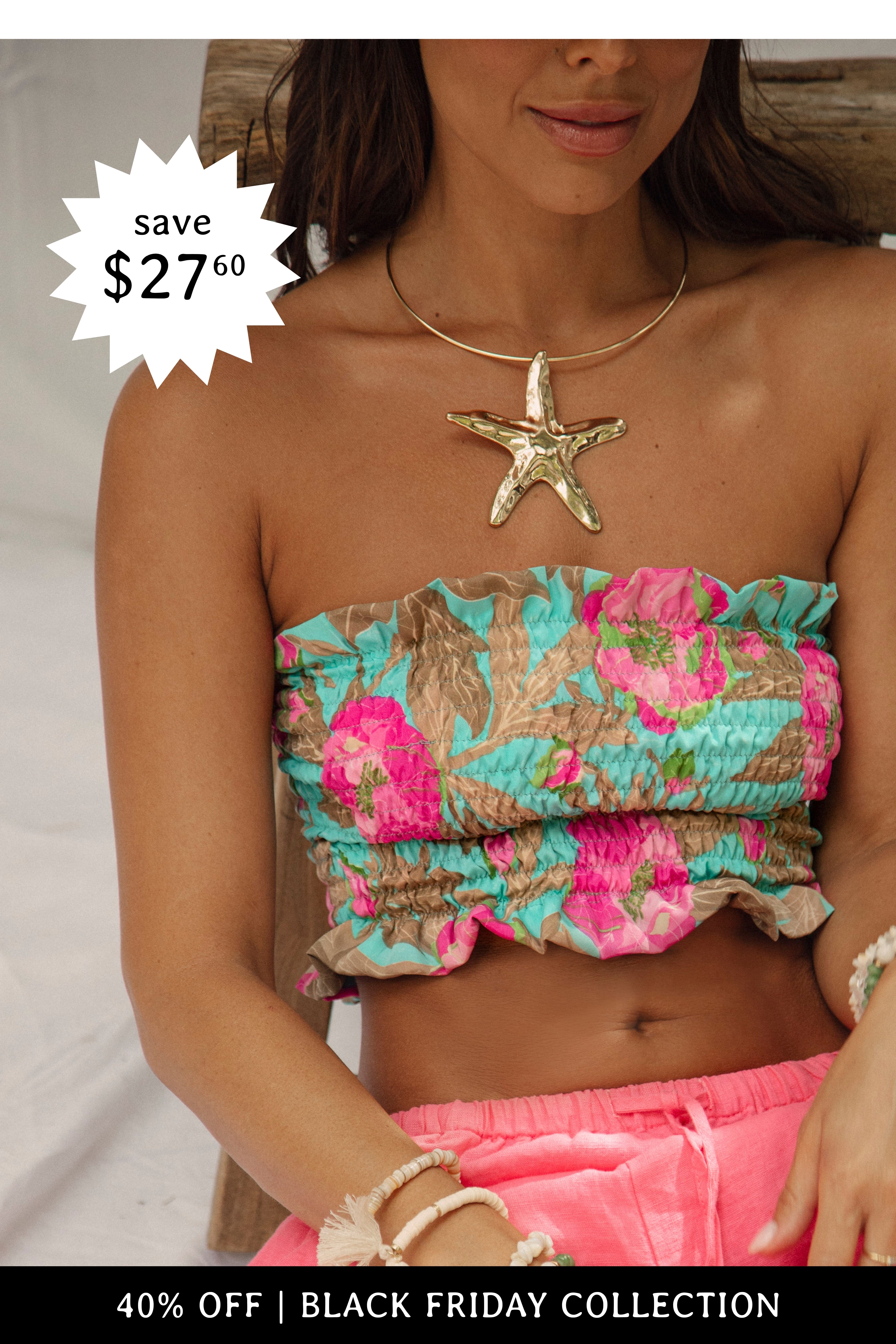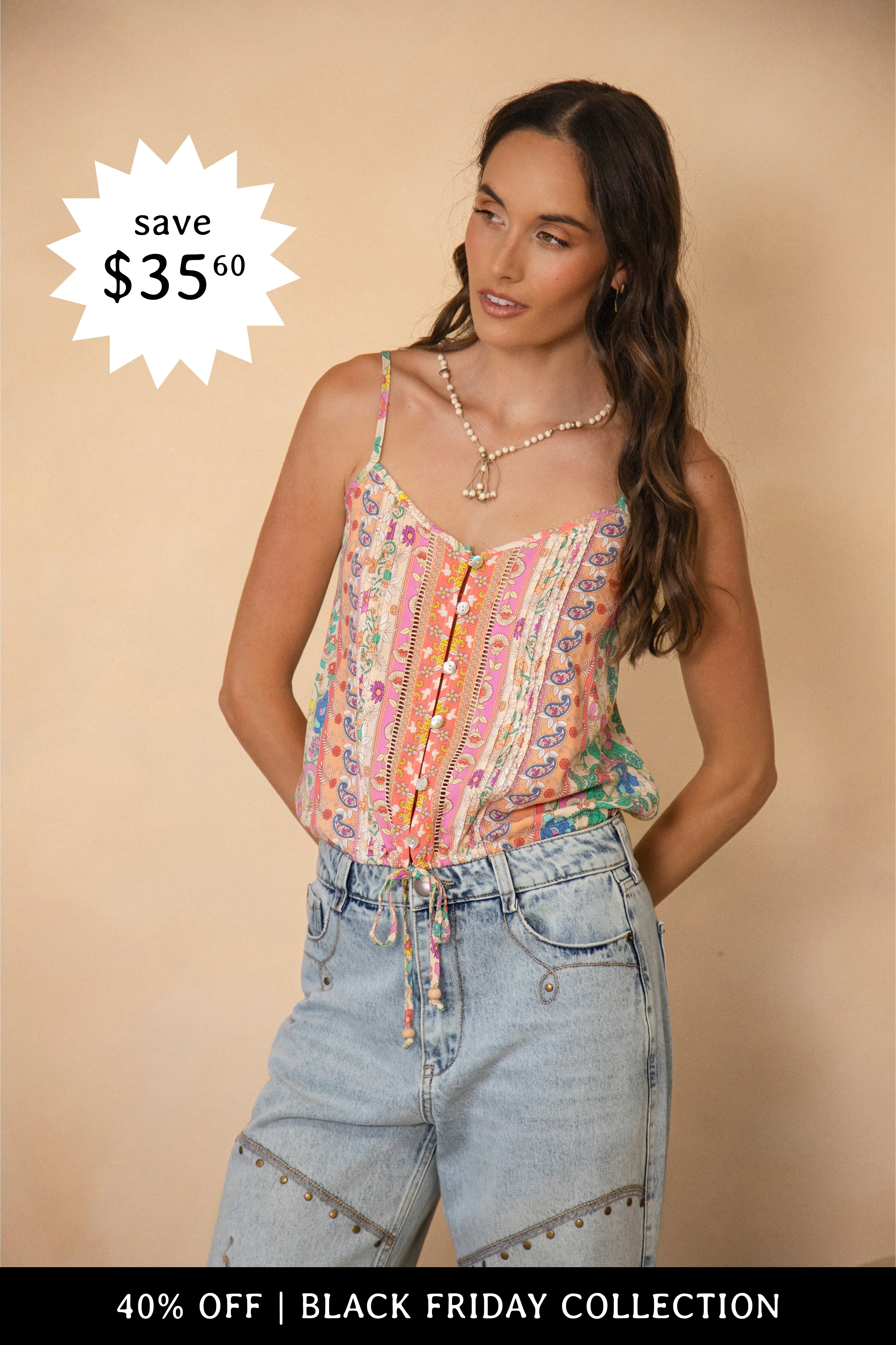 Castaway Cami Waterlily featuring floral inspired Boho print in shades of blue and green