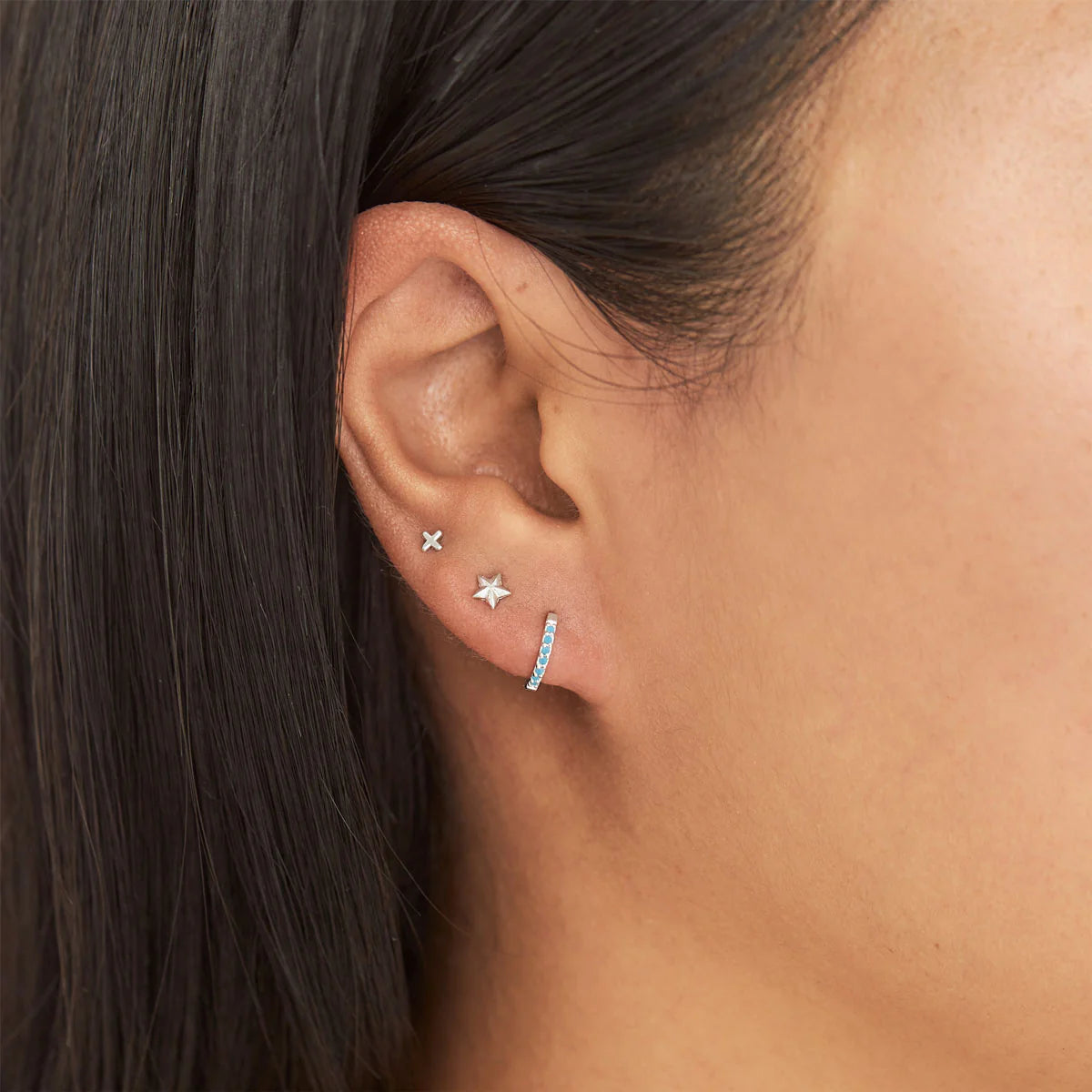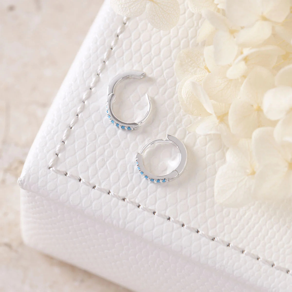Sterling Silver Sparkles Turquoise Micro Huggies