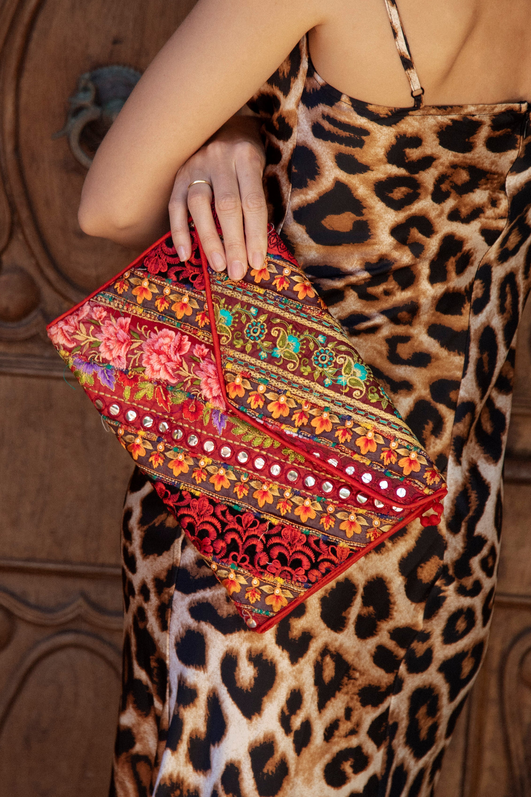 Festiva Embroidered Clutch - Rosa Red Assorted
