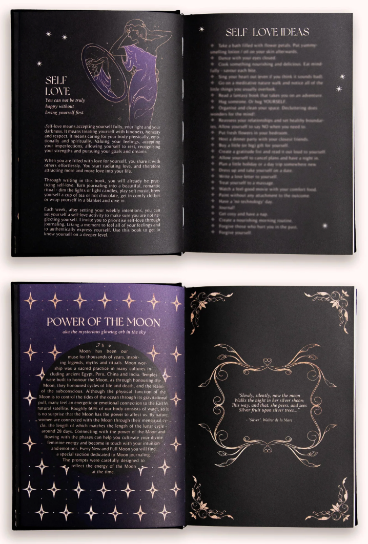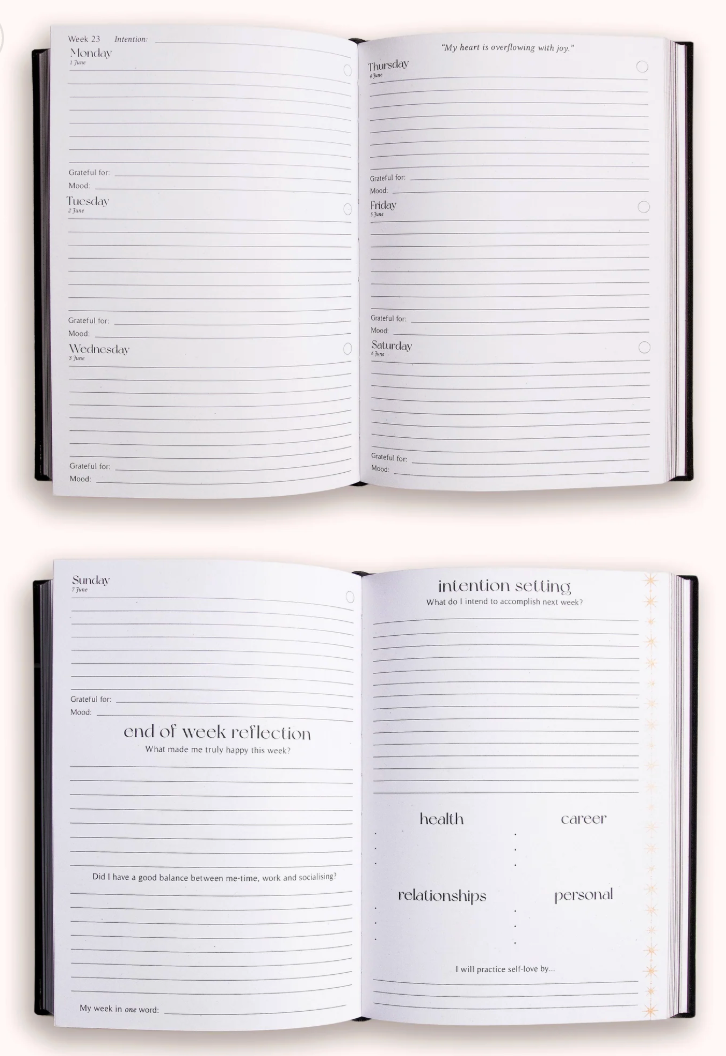 A diary with a focus on mindfulness, astrology, gratitude, intention setting, self reflection, creativity and personal growth.