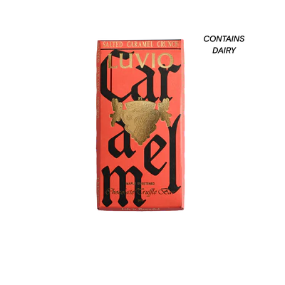 A cream truffle centre with light caramel notes, crisp caramel shards, and a trace of fleur de sel. Wrapped in maple-sweetened tigernut chocolate, it melts slow and stays soft. Beautifully balanced and ridiculously easy to love. (Contains dairy). 90g
