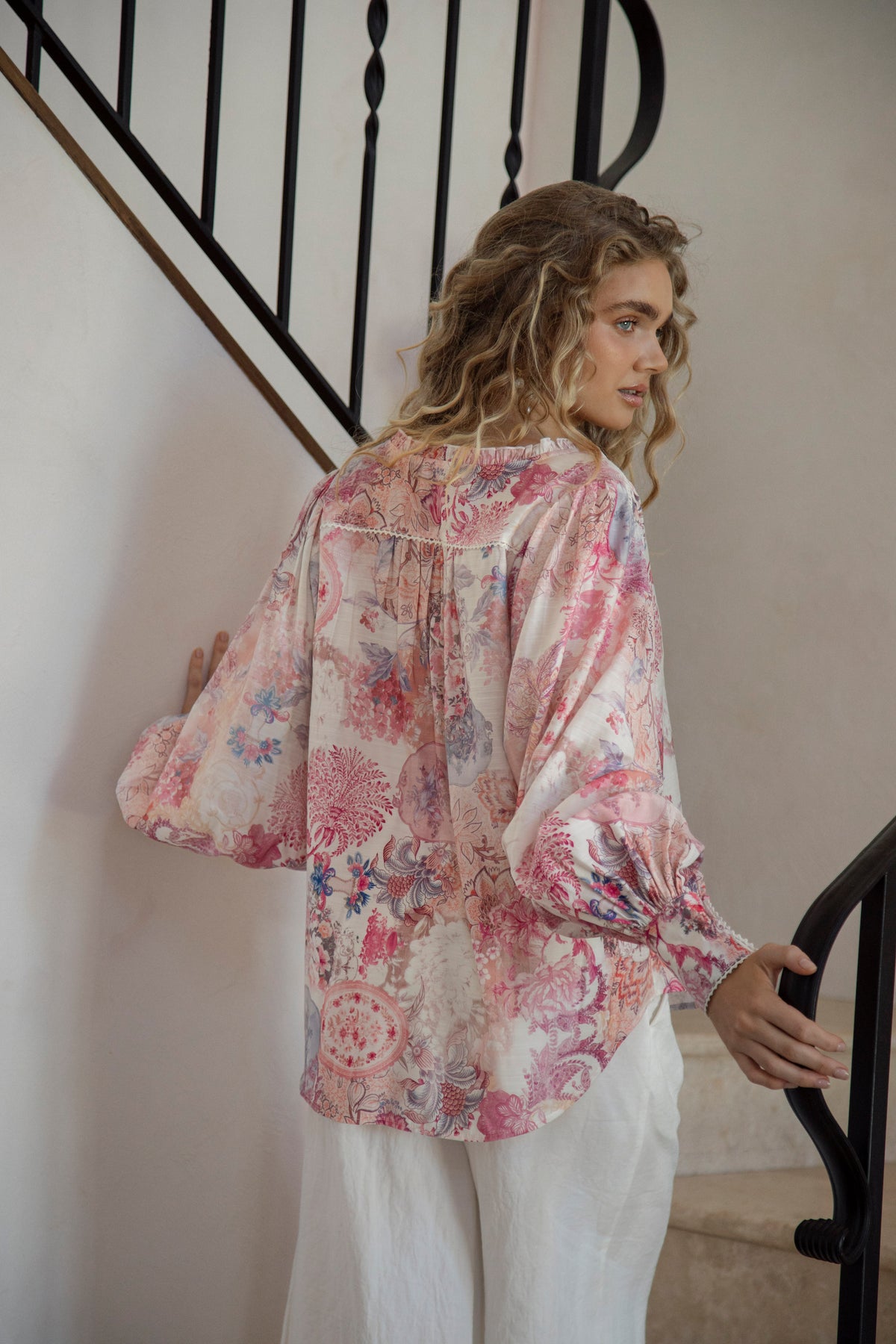 Daphne Blouse Posie - Boho style blouse featuring floral pattern in shades of pink
