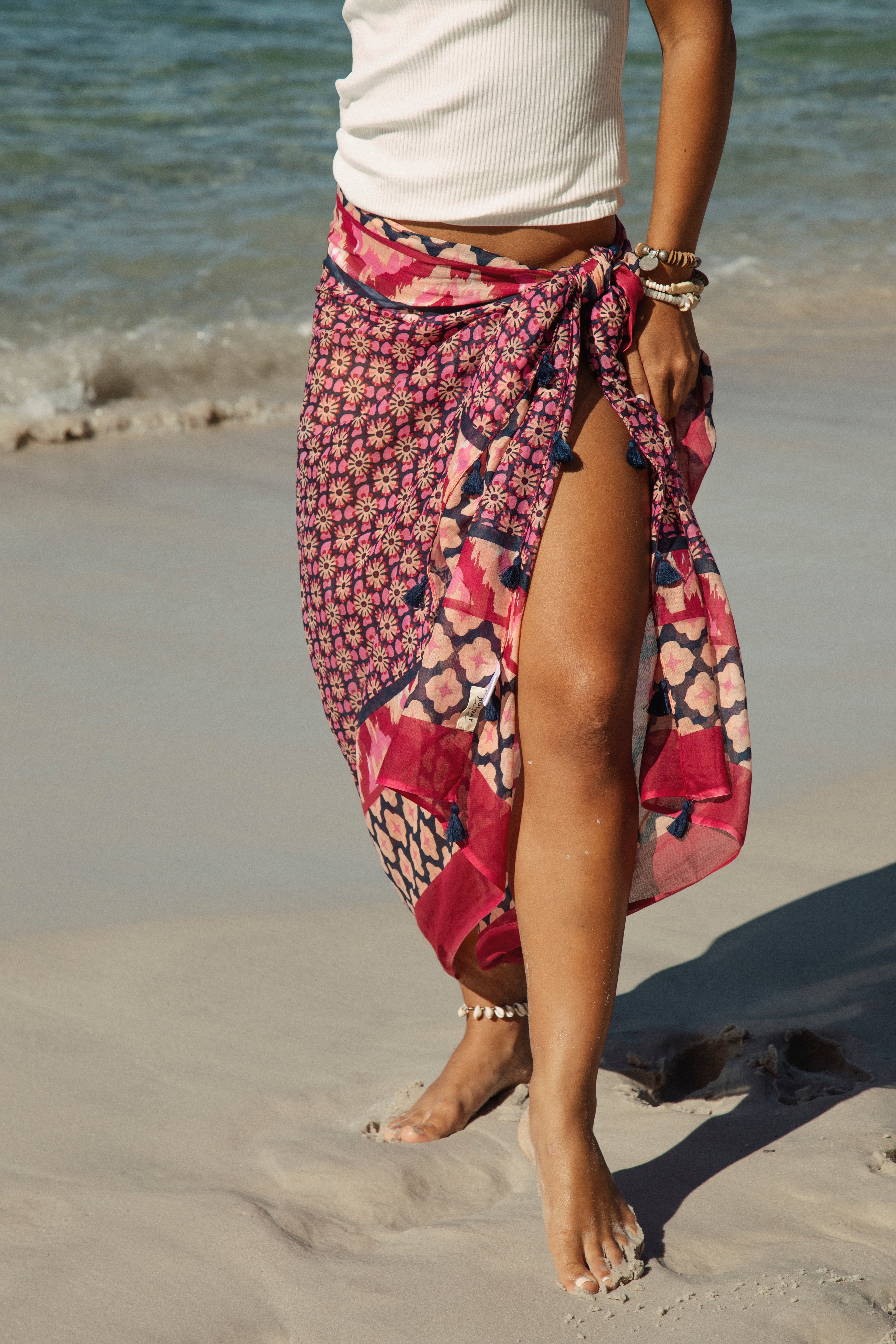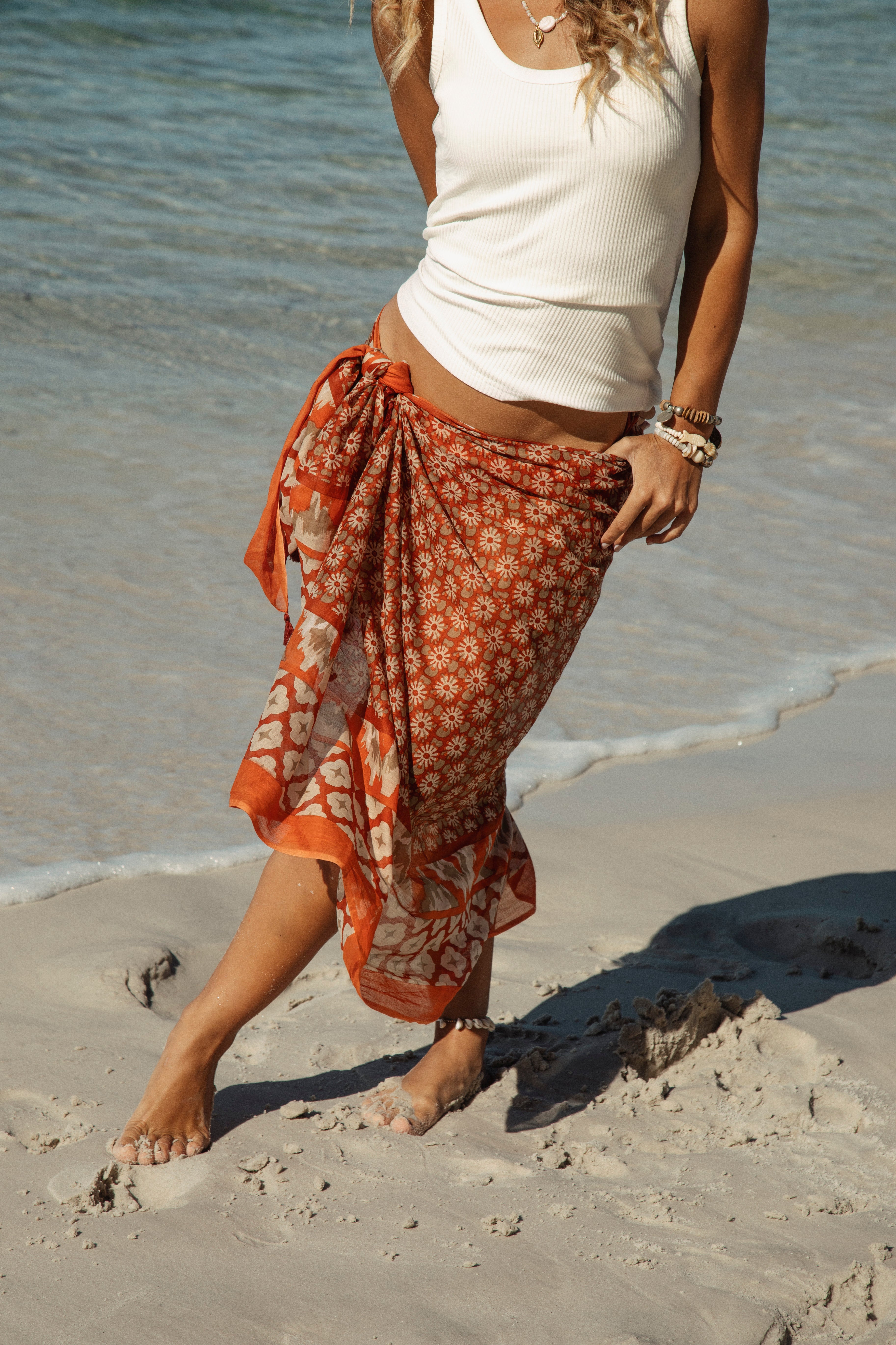 Coral Sands Smock Dress is a Boho style maxi dress in shades of tangerine with contrast hem