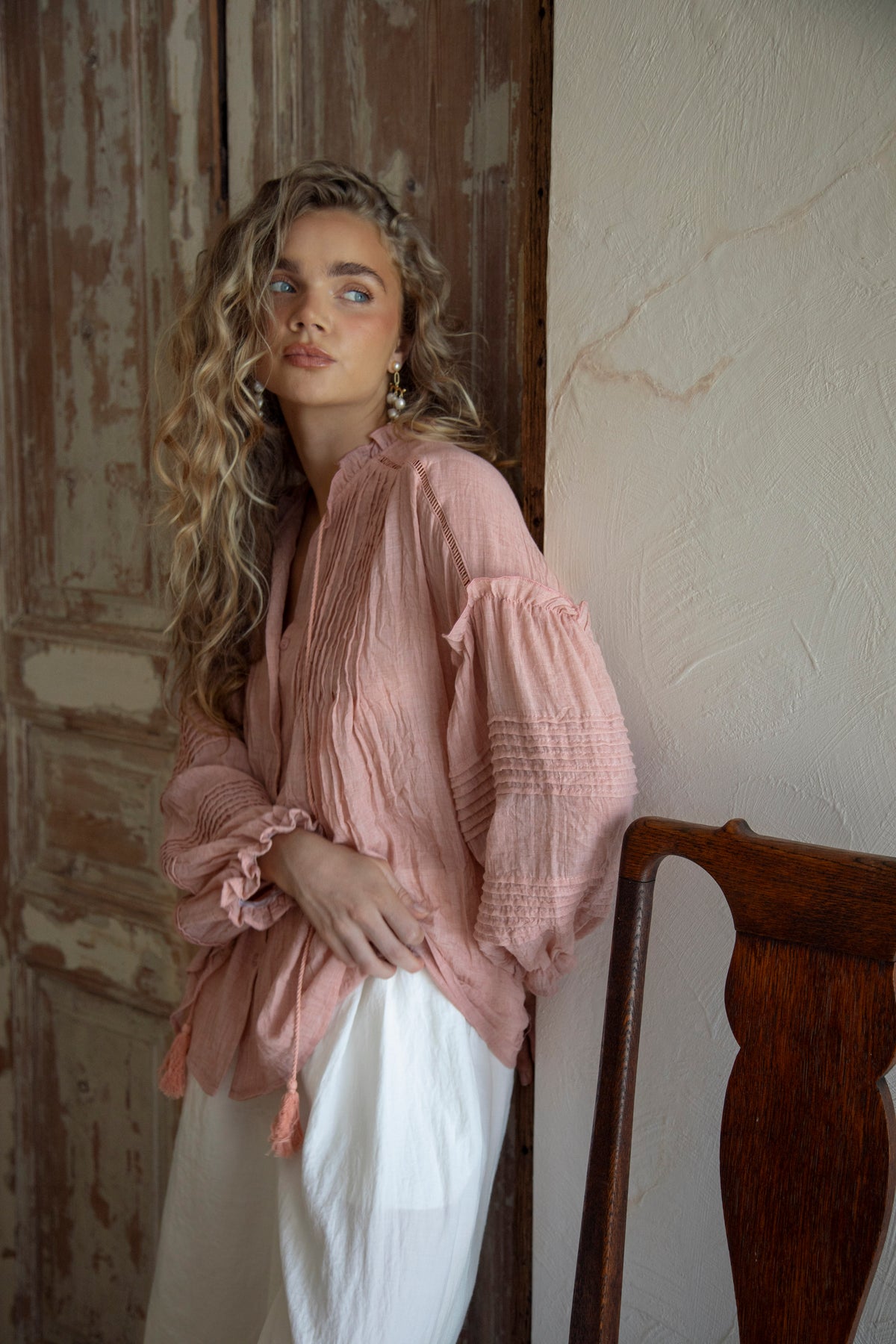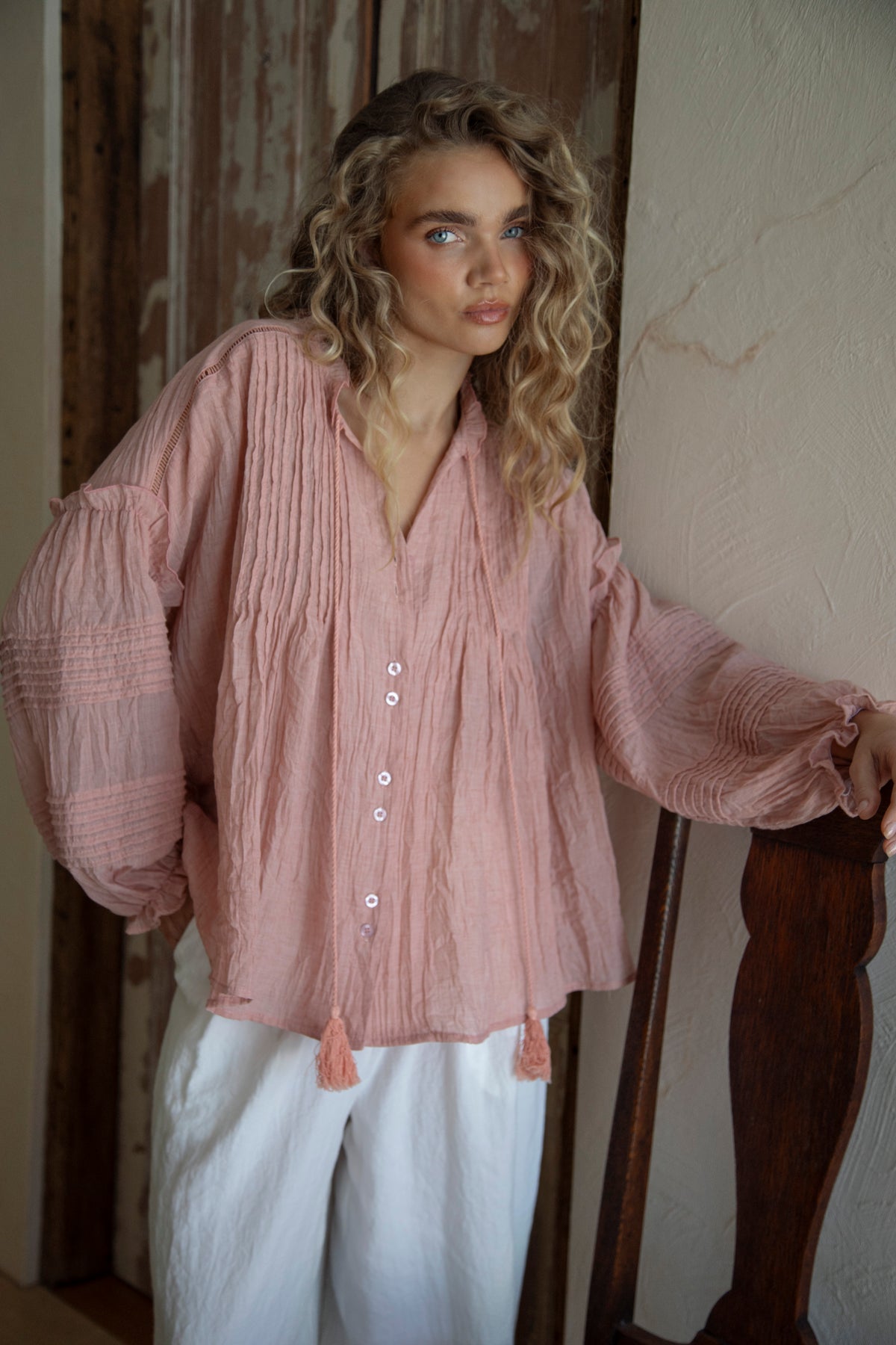 Our Poppy Blouses are your classic boho shape in two easy-to-wear, soft pastel colourways. We love the cotton feel of these floaty blouses and how beautiful they are to style with denim, cream pants and cardigans.