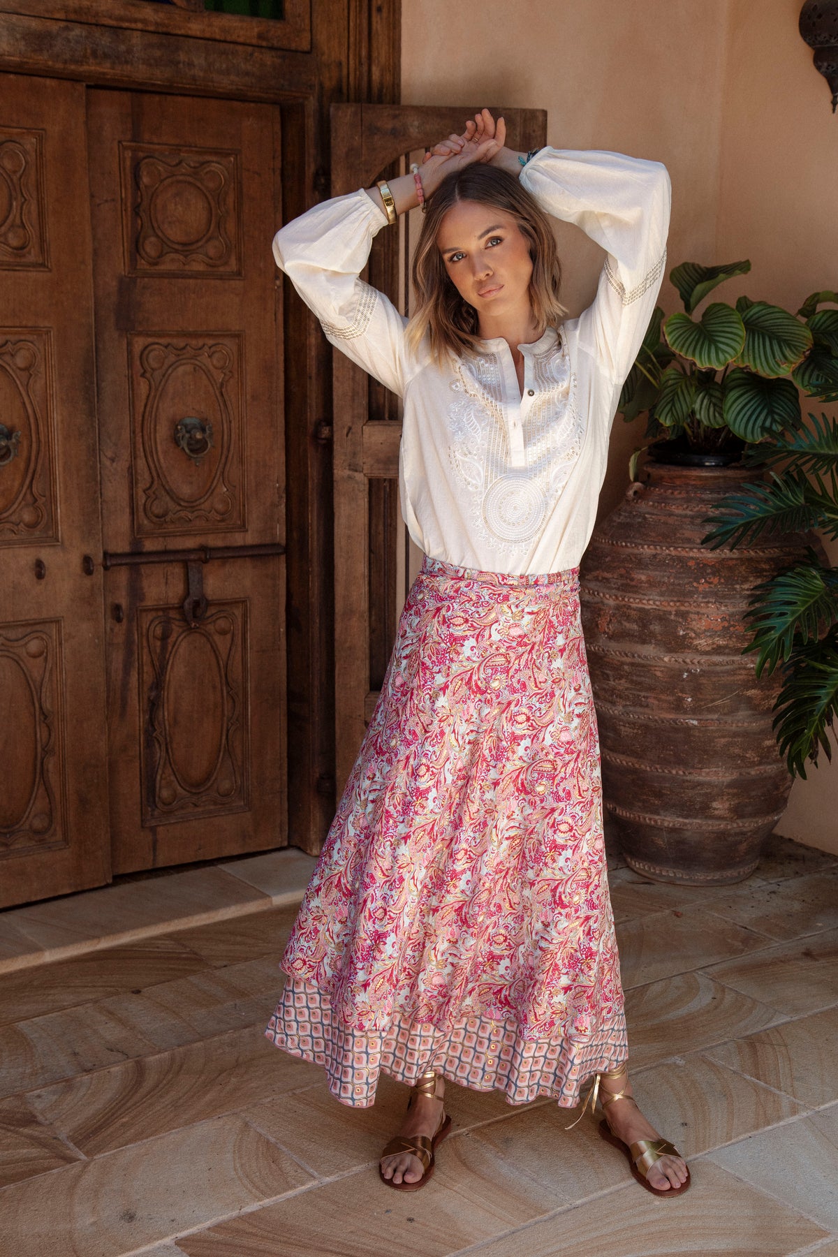 For the bohemian goddess at heart, introducing our best-selling Goddess Wrap Skirt in 'Rosalita.'