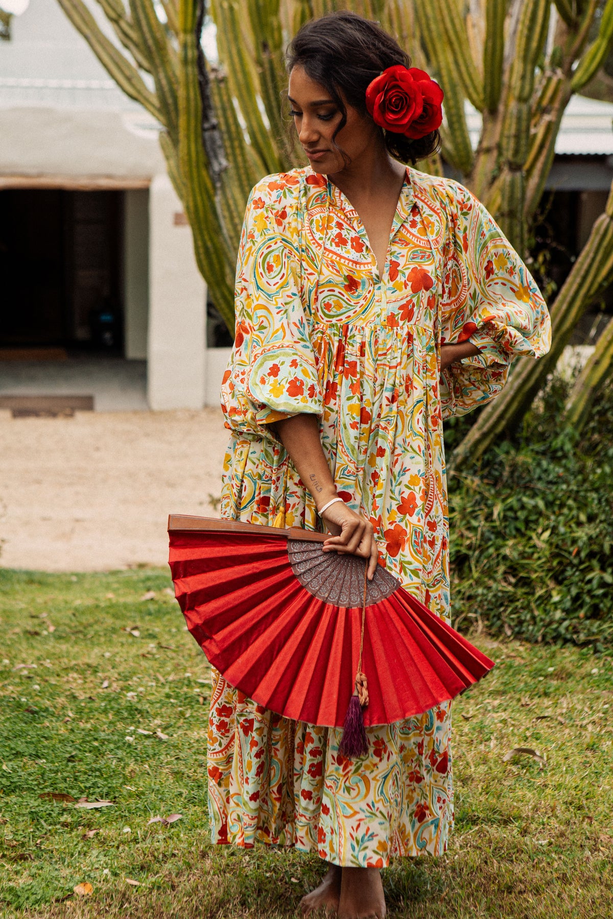 Introducing the head-turning Sofia Midi Dress. This statement dress features a divine, flouncy sleeve, a flattering v-neckline, tie-detailing at the neckline, midi length, and a detachable matching fabricated tie.