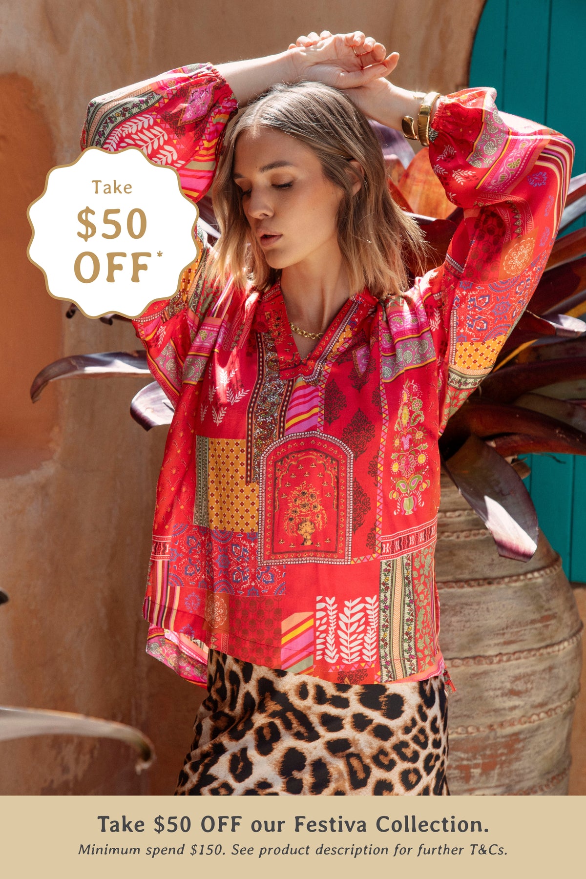 *TAKE $50 OFF OUR FESTIVA COLLECTION. Simply add your Festiva favourites to cart. Once you reach the minimum spend threshold of $150, your $50 discount will automatically apply. Please note the minimum spend threshold must comprise of clothing products from our Festiva Collection only. Any products (that are not within the Festiva collection) won't count toward the minimum threshold. Offer ends 11:59pm AEDT 26th Jan.